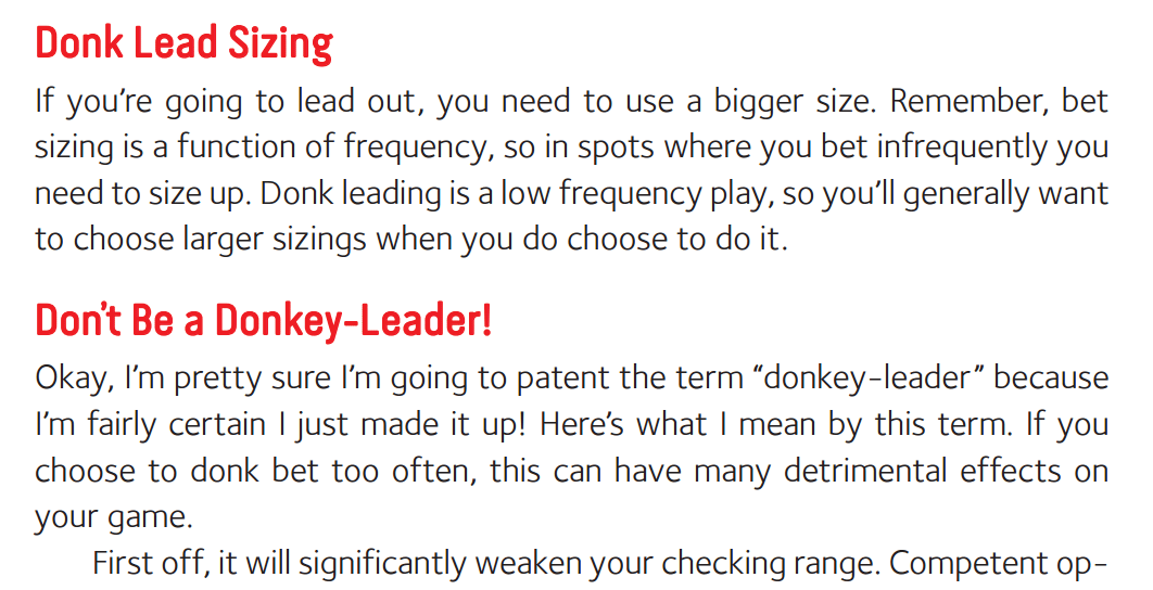 What's your biggest leak with donk leading? Are you doing it too often and weakening your checking range, or never doing it at all and missing profitable spots with range advantage? Reply to this email and tell me. I read them all!