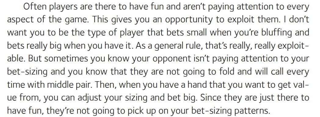 They came to have fun, tell stories, and gamble. They're often on vacation or just want something exciting to talk about tomorrow. That completely changes how you should play against them.