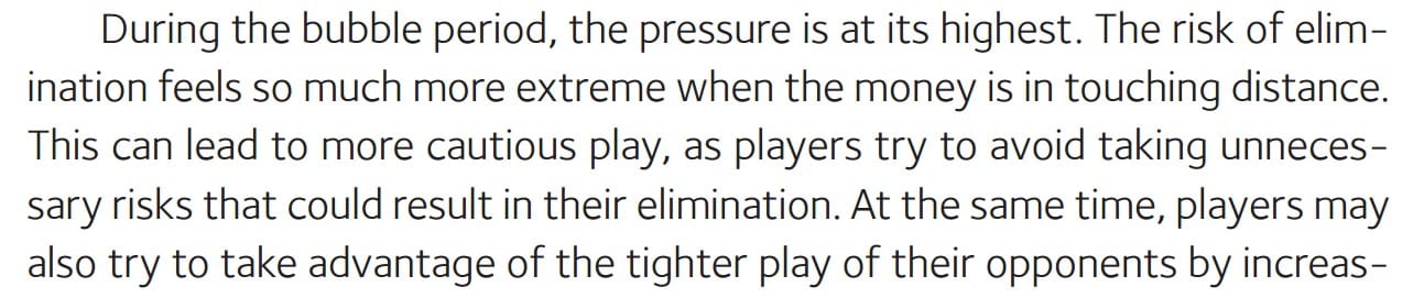 In my book, I break down the Bubble period in detail—including how to exploit tight players, when to apply maximum pressure, and how ICM considerations change your ranges completely.
